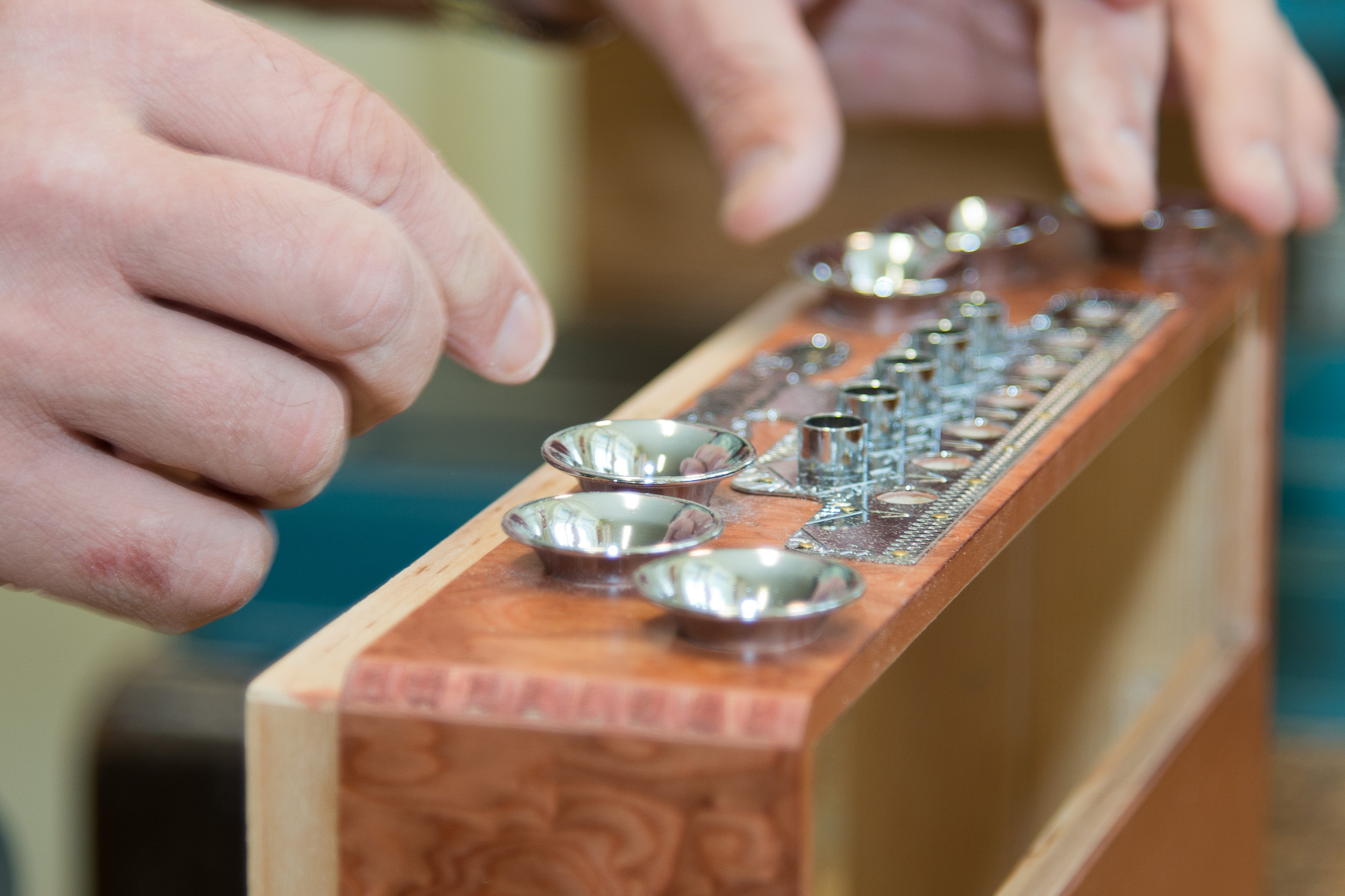 Bildtext 2: Österreichs älteste Harmonikaerzeugung, „Novak-Harmonika“ in Klagenfurt, wurde heuer vom größten Anbieter für Harmonikaschulen, Michlbauer GmbH mit Sitz in Reutte/Tirol übernommen. GF Heinrich Schedler und sein Sohn Dominic werden die Geschicke des Unternehmens führen. In der Mitte die erste 5-reihige Steirische Harmonika, diese wurde um 1900 erstmals von Rupert Novak gebaut. (Bild: Michlbauer/Foto-Fritz)