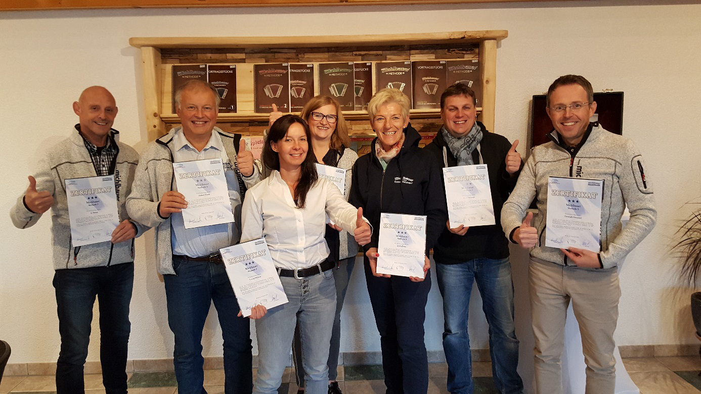 Anfang Mai startete Michlbauer mit diesem Musizier-Workshop im neu eröffneten Harmonika Trainingscenter in die heurige Sommersaison. Zum Auftakt war eine 8-köpfige Harmonikagruppe aus den Niederlanden im neuen Michlbauer-Haus in Reutte zu Besuch. Sie nützten die Gelegenheit ihren einwöchigen Urlaub in der Naturparkregion Reutte mit einem Intensiv-Workshop beim musikalischen Leiter Johannes Petz in der Michlbauer Harmonikawelt zu verbinden. Die Teilnehmer zeigten sich vom Workshop nicht nur begeistert, sondern nahmen neben vielen schönen Eindrücken auch ein Stück alpenländische Musikkultur mit in ihre Heimat, welche sie dort dann wieder weitertragen.