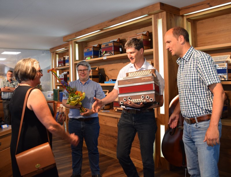 Anlässlich der Eröffnung der neuen Firmenzentrale in Reutte hat Michlbauer vom langjährigen Geschäftspartner, der Harmonikaerzeugung Strasser, ein ganz besonderes Geschenk erhalten. Sie stellte der Michlbauer Harmonikawelt, bzw. der Harmonikaschule ein nigelnagelneues Instrument im Wert von über 5.000,- EUR zur Verfügung.