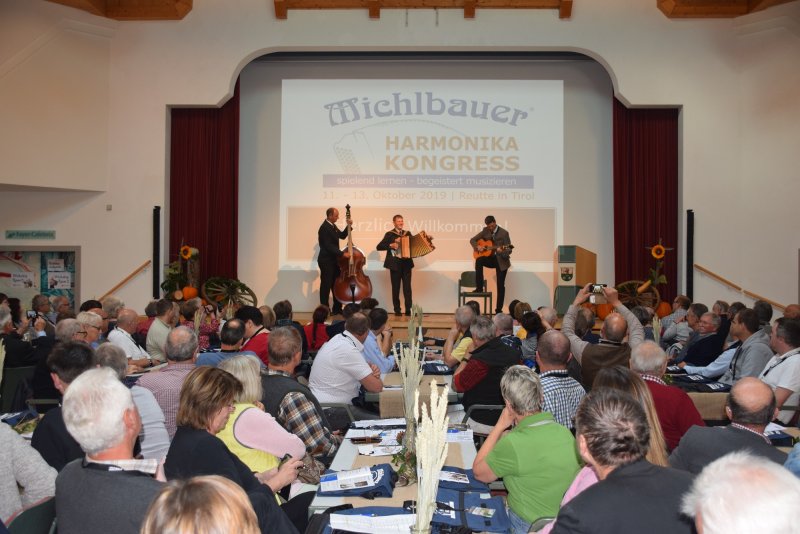 Über 160 aktive Kongressteilnehmer aus Österreich, Deutschland, Schweiz, Liechtenstein und Niederlande und mehr als insgesamt 300 Besucher strömten am Wochenende des 11.-13. Oktobers 2019 nach Breitenwang in das Veranstaltungszentrum zum 3. Michlbauer Harmonika Kongress. Begleitet von strahlendem Herbstwetter präsentierte sich der Veranstaltungsort in der Naturparkregion Reutte von seiner schönsten Seite.
