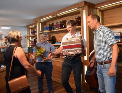 Zur Überraschung von Harmonikaschule Direktor Johannes Petz, wurde auch ihm für seine 15-jährige Lehrertätigkeit gratuliert. GF Heinrich Schedler, selbst begeisterter Musikant, dankte Johannes Petz für seine Tätigkeit als Lehrer und schulischen Leiter, der seit Anfang an dabei ist und überreichte nebst Urkunde auch ein Präsent seitens der Michlbauer Harmonikawelt.