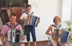 Prof. Florian Michlbauer, Geschäftsführer Heinrich Schedler und Harmonikaschuldirektor Johannes Petz eröffneten den 3. Michlbauer Harmonika Kongress feierlich mit einem musikalischen Trio.