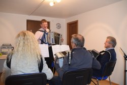 Am zweiten Seminar-Tag wurde weiter an der Begleittechnik und dem Zusammenspiel in der Oberkrainer-Besetzung gearbeitet. Die vielen Tipps von Franci und Rene halfen den Teilnehmern dabei, das richtige Spielgefühl für den typischen Oberkrainer-Swing zu entwickeln.