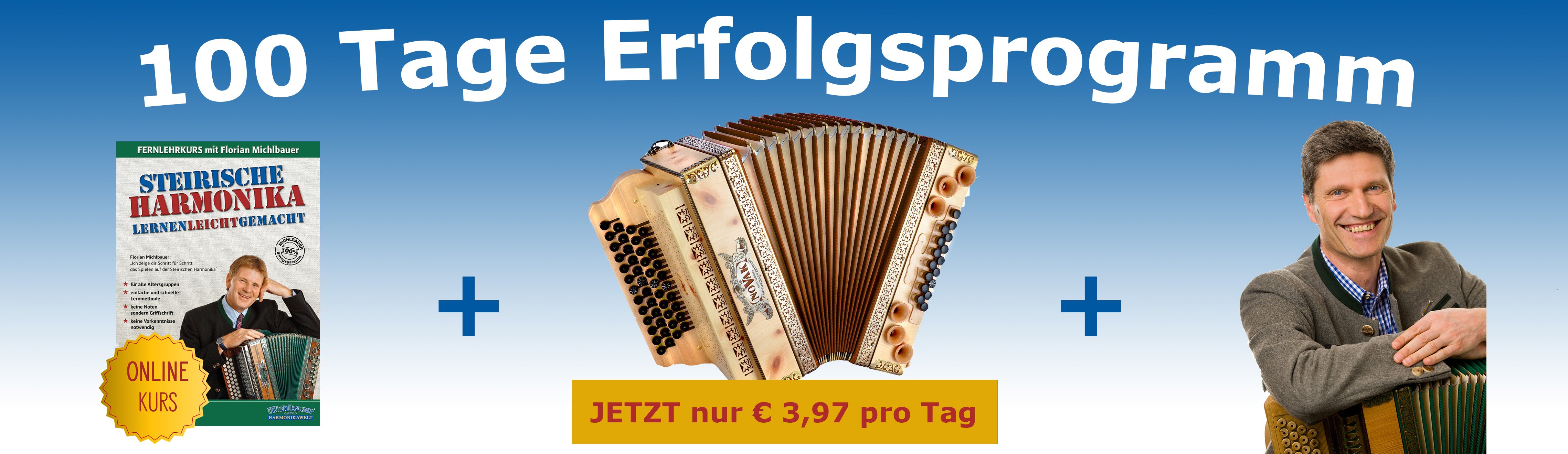 Die erfolgreichste Lernmethode für Steirische Harmonika liegt nun “frisch auf dem Tisch” vor: Ein Online-Kurs, welcher dem interessierten Neueinsteiger ermöglicht, die Michlbauer Griffschrift in kurzer Zeit und auf einfache Weise zu erlernen. Darüber hinaus wurde ein Einsteiger Komplett-Paket geschaffen, wo du alles bekommst, was du zum erfolgreichen Musizieren benötigst!